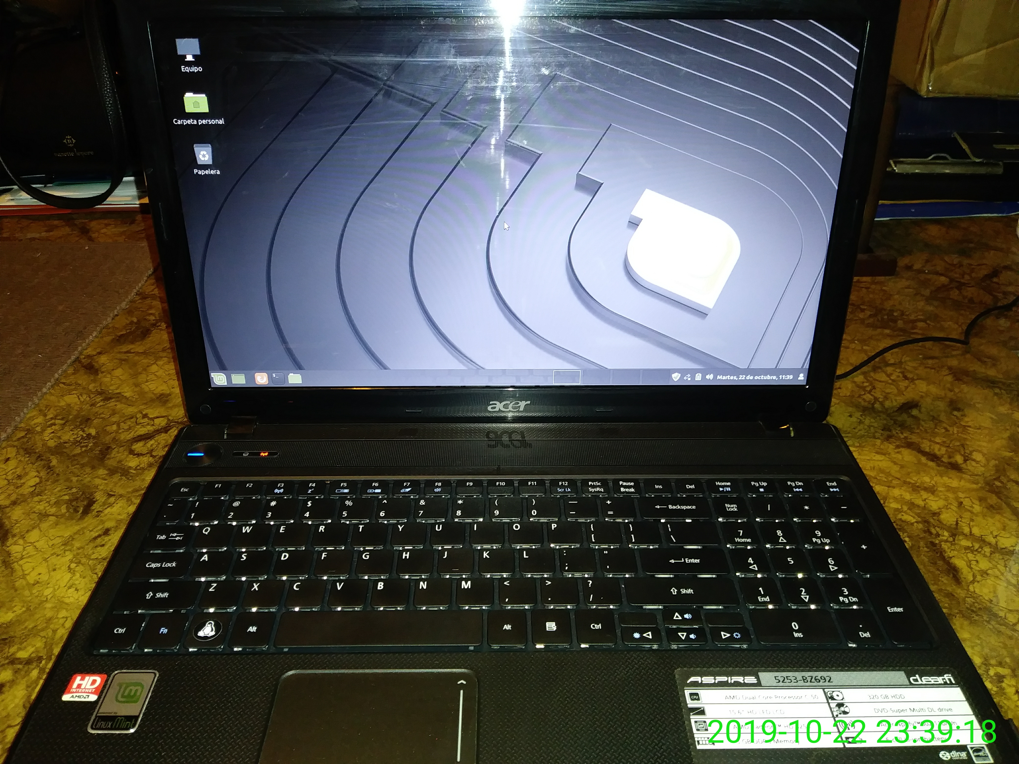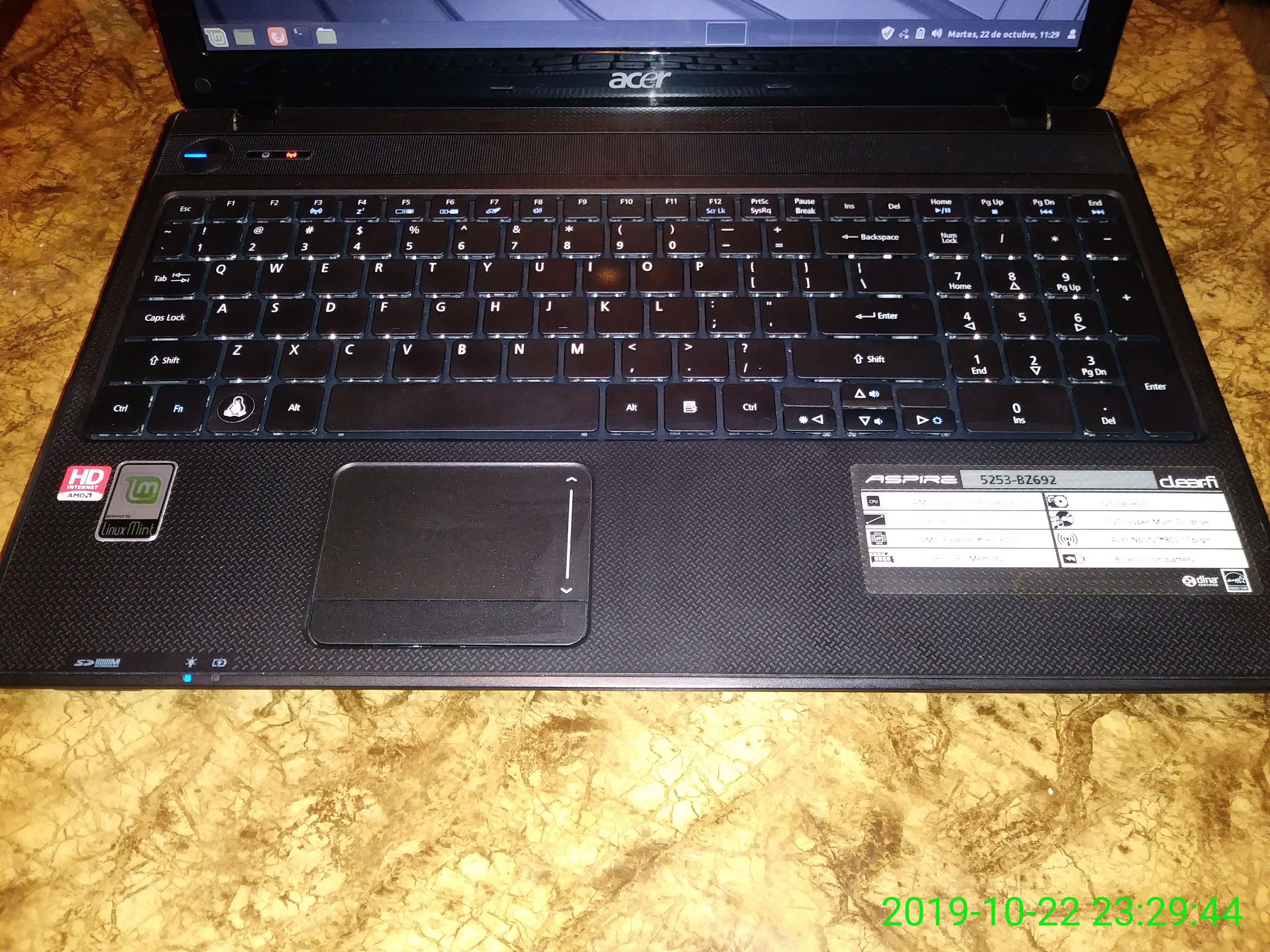 Les presento la laptop Acer Aspire 5253-BZ692 que tiene instalado Linux Mint Debian Edition (LMDE) (Traducción al Español), desde el martes, 6 de agosto de 2019.